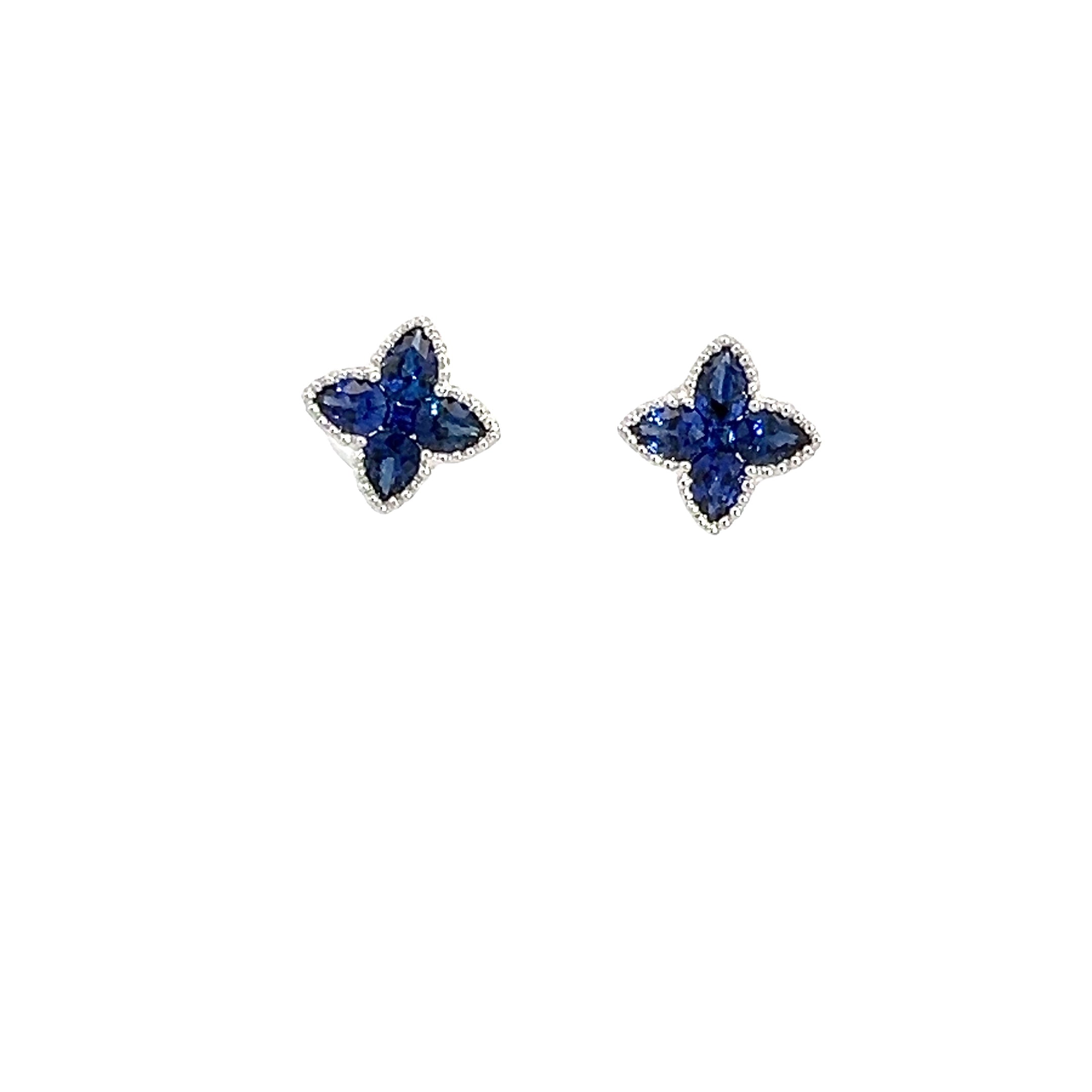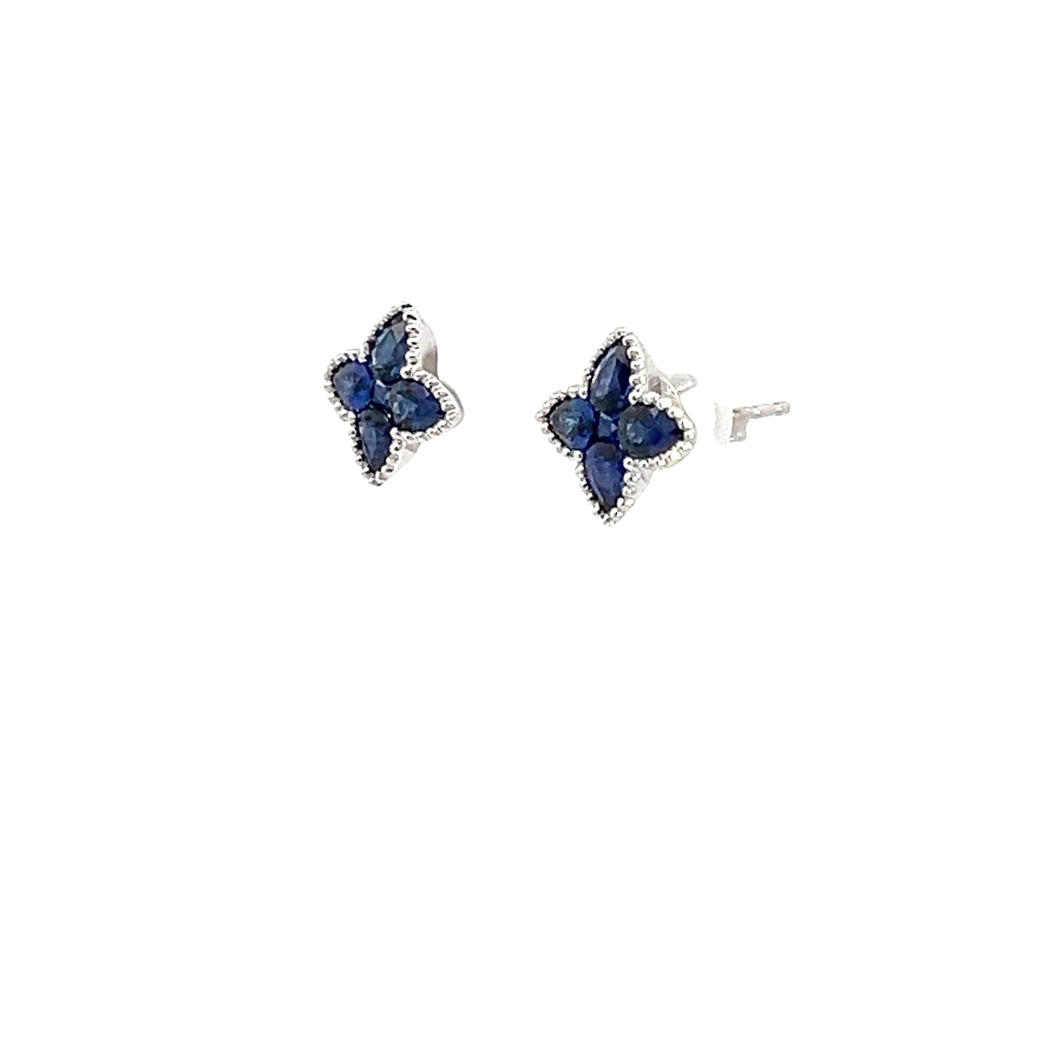 Add a splash of charm to your look with these playful blue sapphire earrings. Crafted in gleaming white gold, each earring blooms like a delicate flower, showcasing the deep, captivating blue of the sapphires. Perfect for brightening any outfit with a touch of whimsy and elegance.
