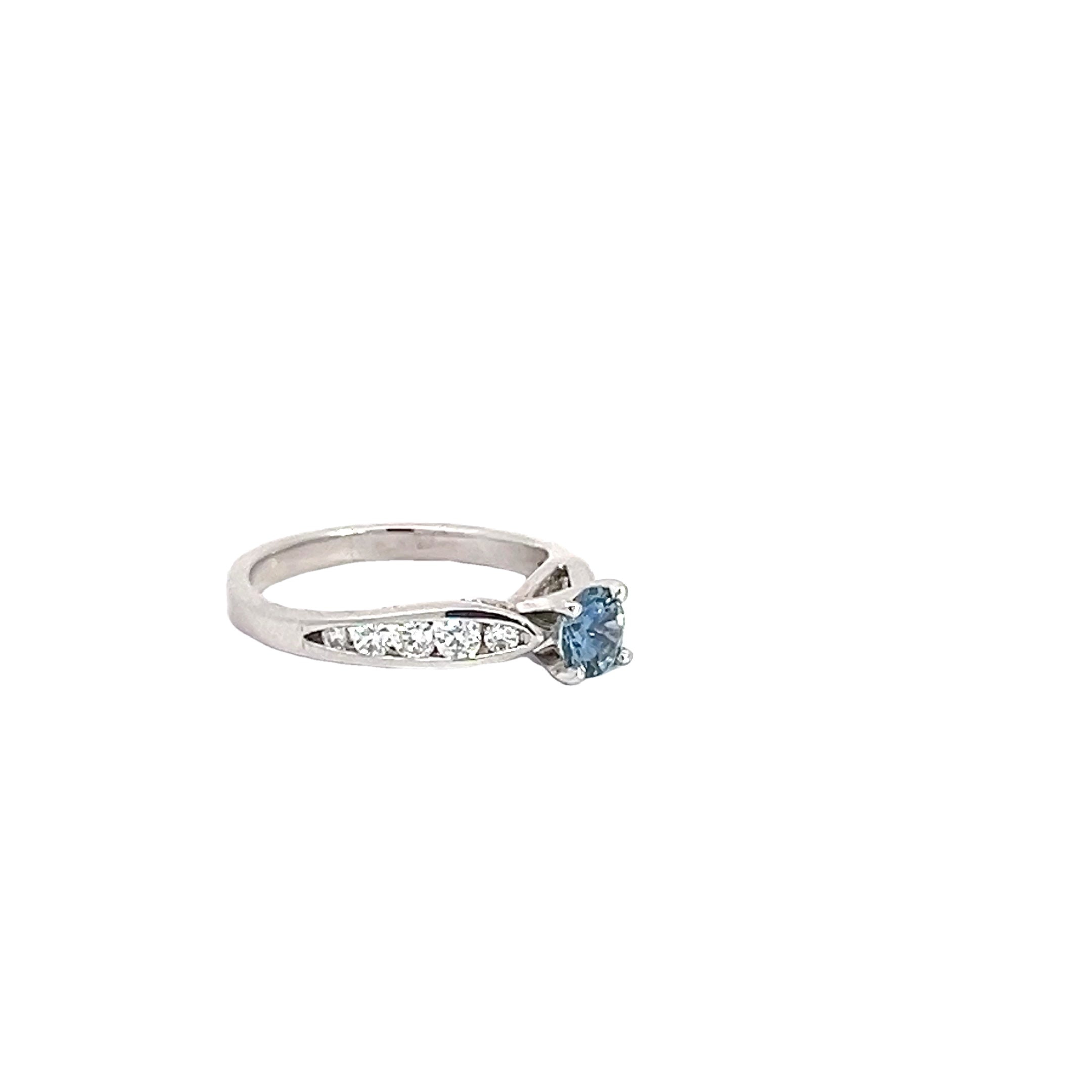 Elevate your style with the Blue Sapphire and Diamond Ring, where a stunning blue sapphire takes center stage, framed by channel-set diamonds that add unmatched brilliance. Crafted in elegant white gold, this ring combines luxury and sophistication, making it the perfect choice to showcase your unique taste and make a lasting impression.