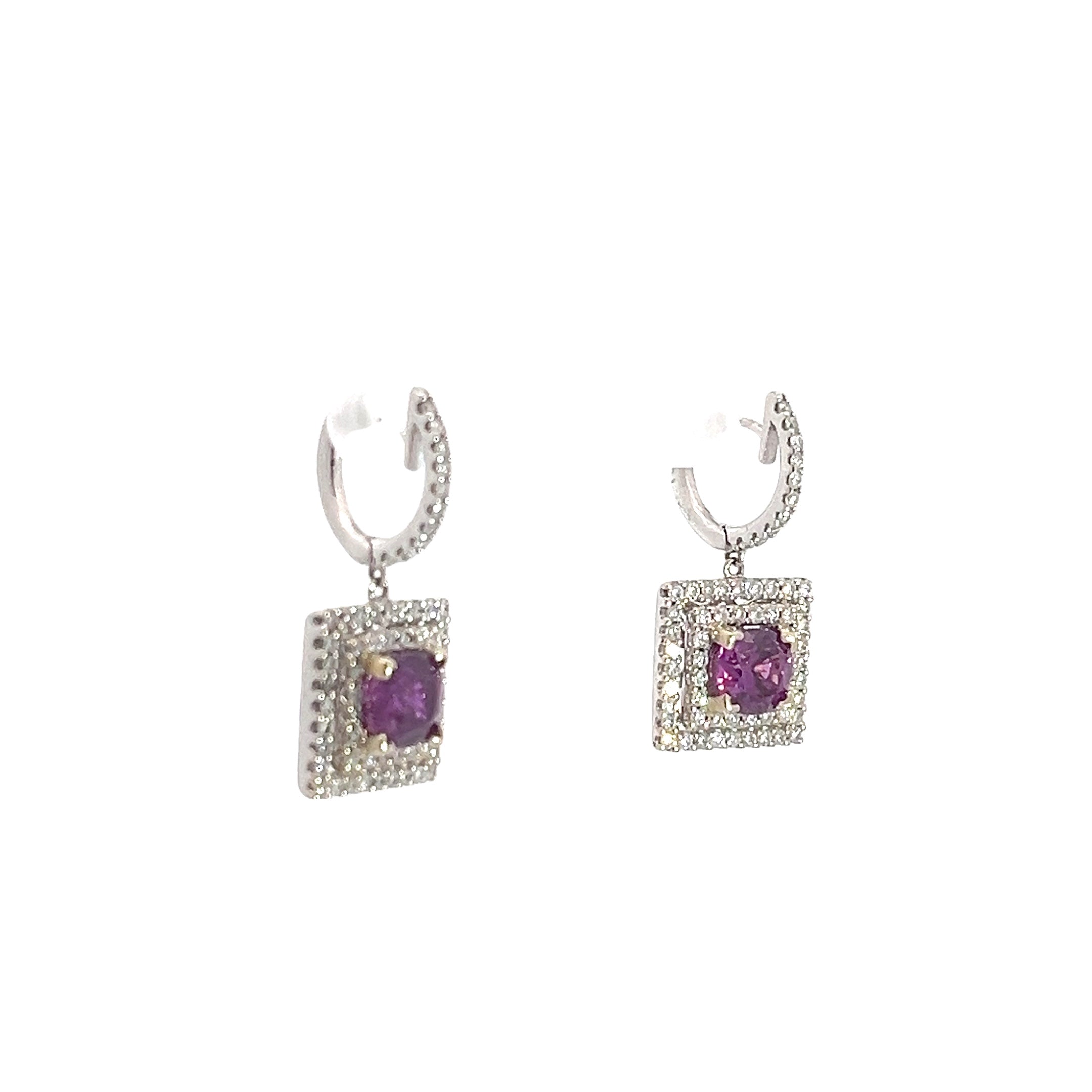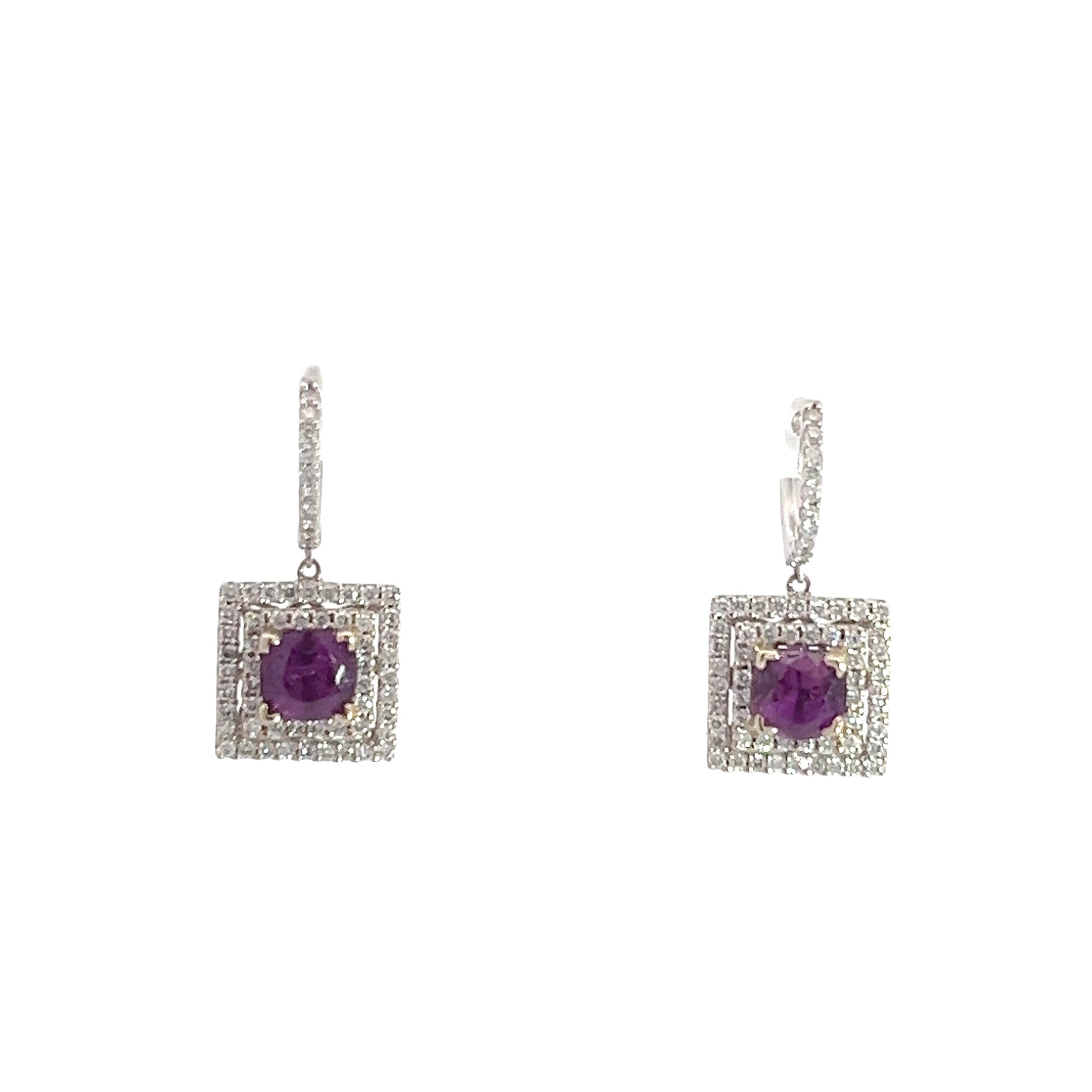 Brighten your day with these playful purple sapphire earrings! Set with dazzling diamonds in a chic square design, they combine timeless elegance with a splash of vibrant color. Perfect for adding a fun twist to any look while keeping it classy and comfortable.