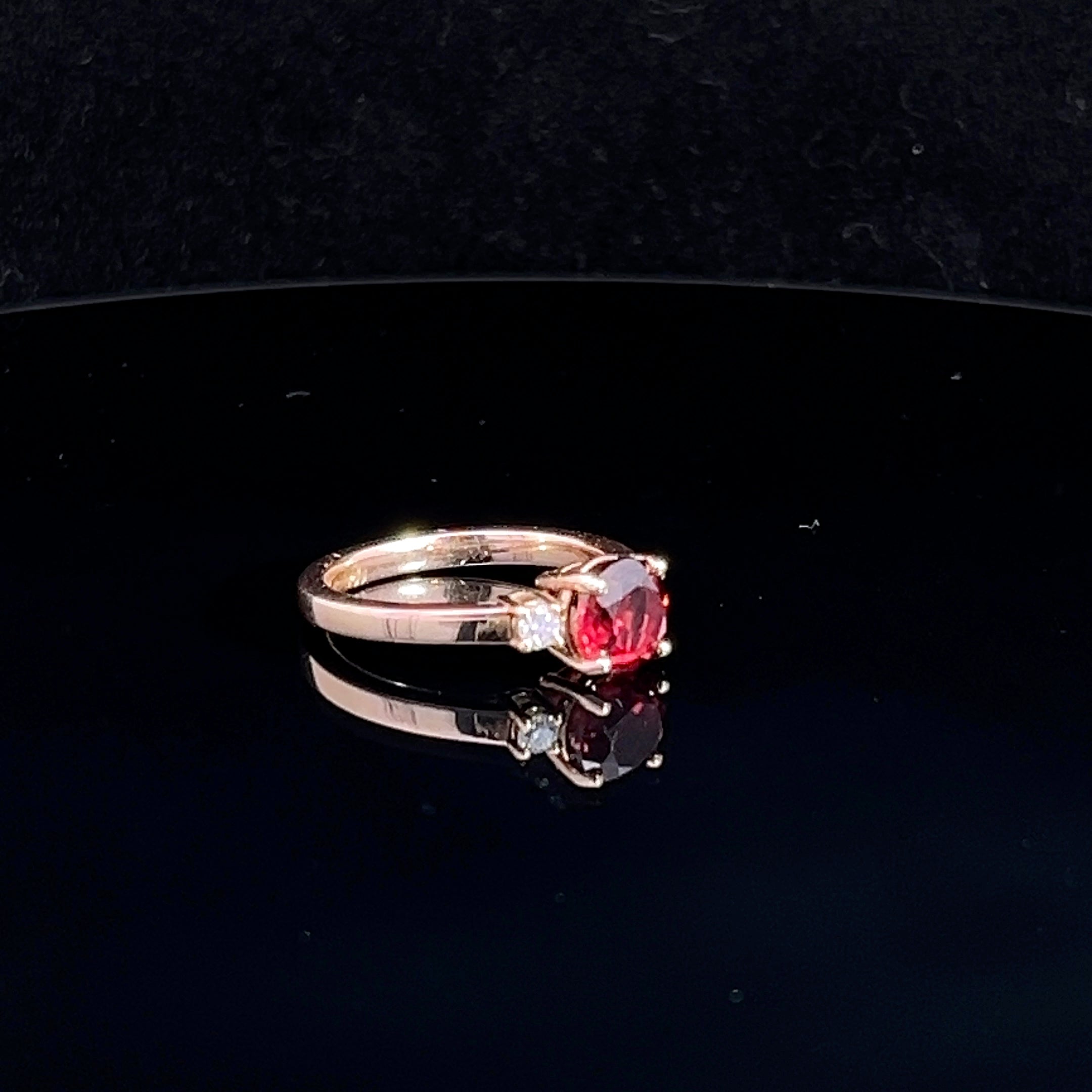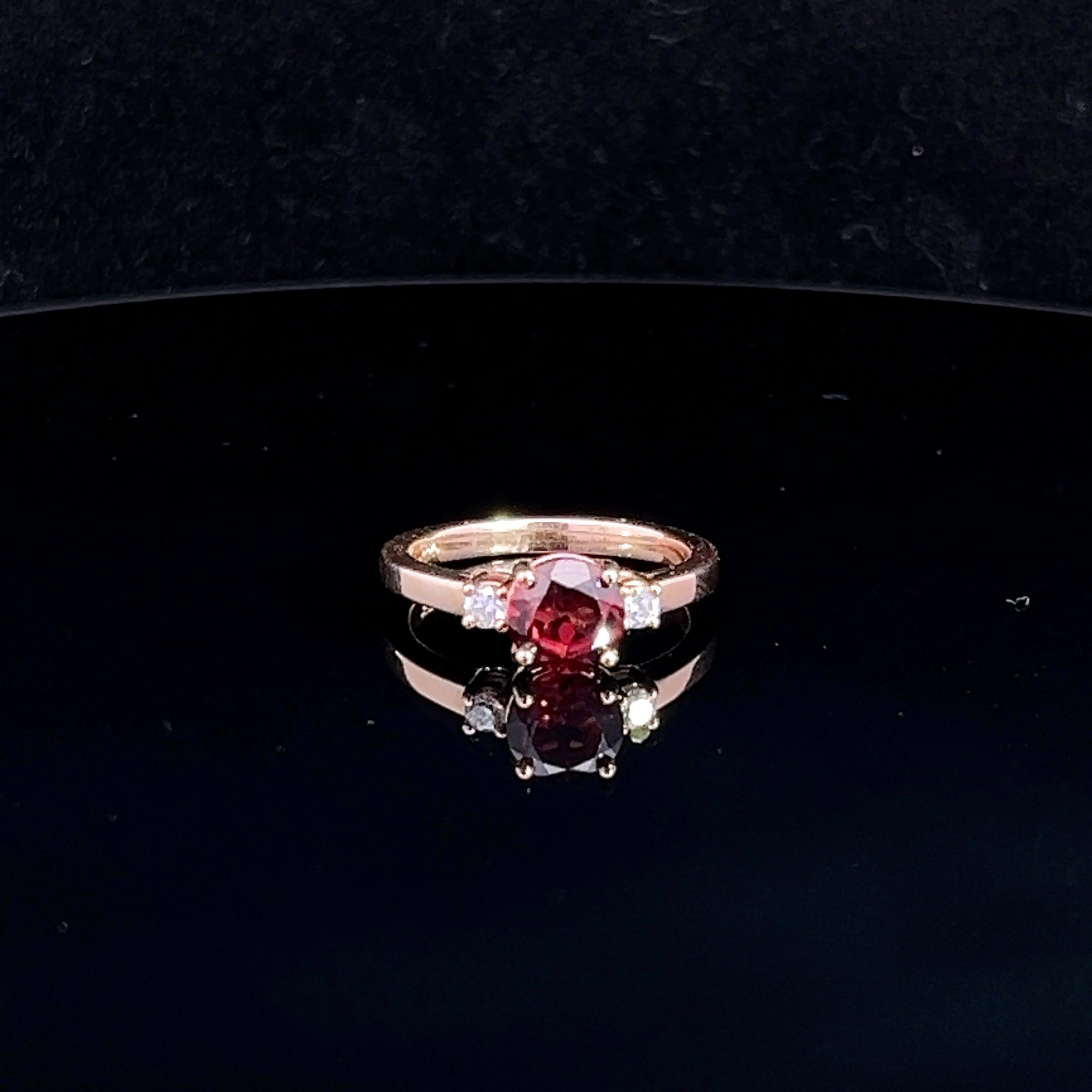 Celebrate your sparkle with this charming Garnet and Diamond three-stone ring! The rich, deep red garnet shines brightly between two dazzling diamonds, creating a playful dance of colors on your finger. Perfect for adding a pop of fun and elegance to any outfit, this ring is a delightful way to express your unique style. Whether for a special occasion or everyday glam, it’s sure to turn heads and spark smiles wherever you go.