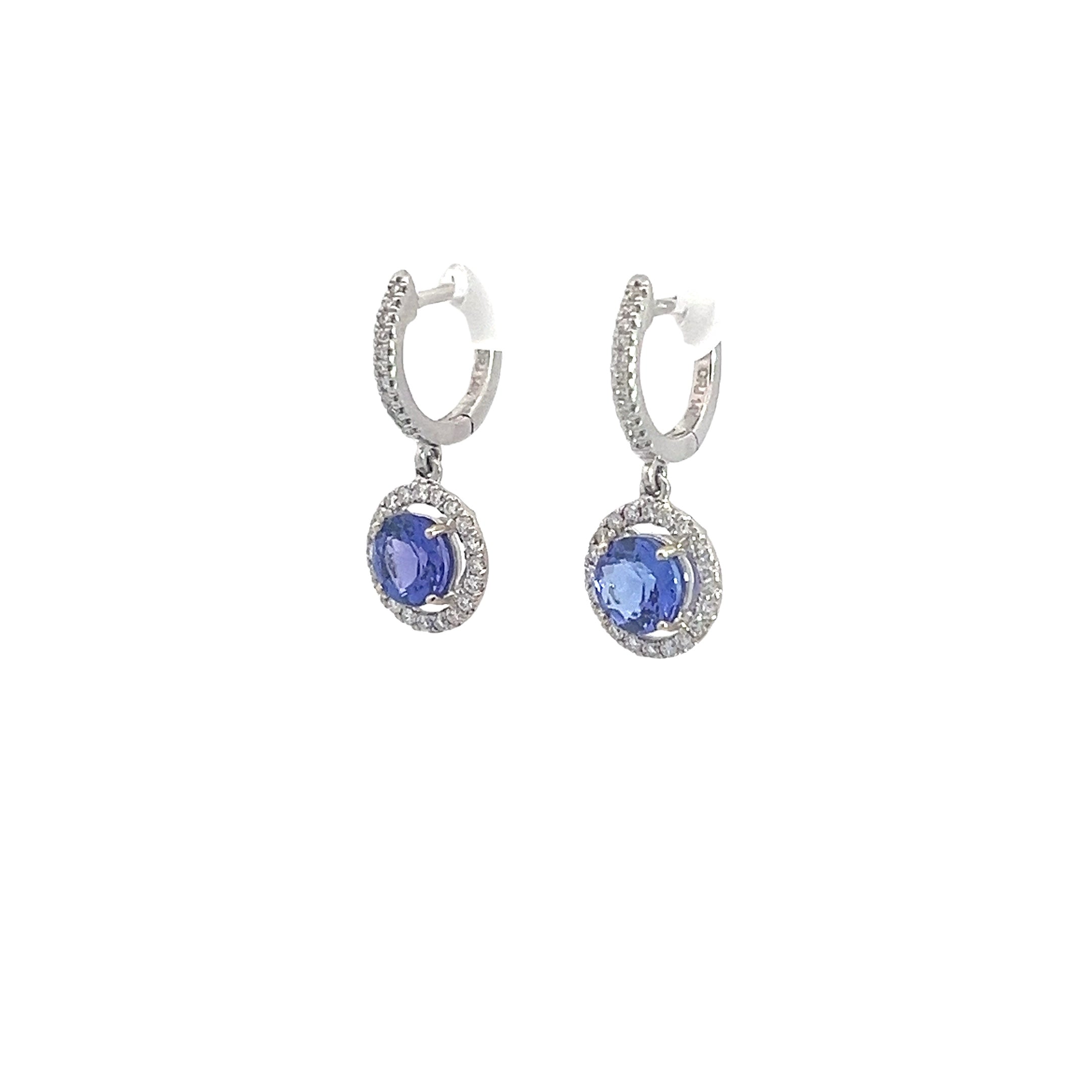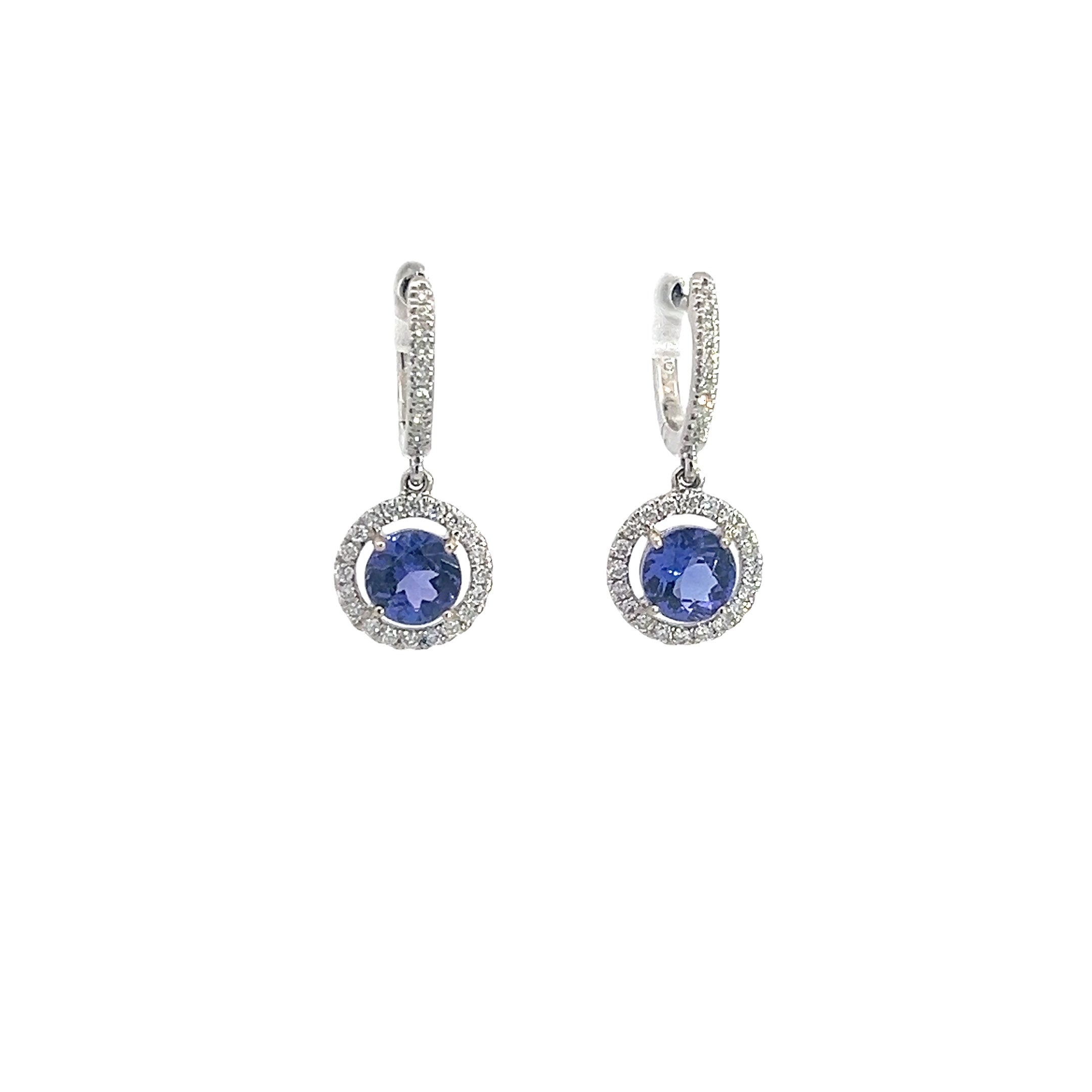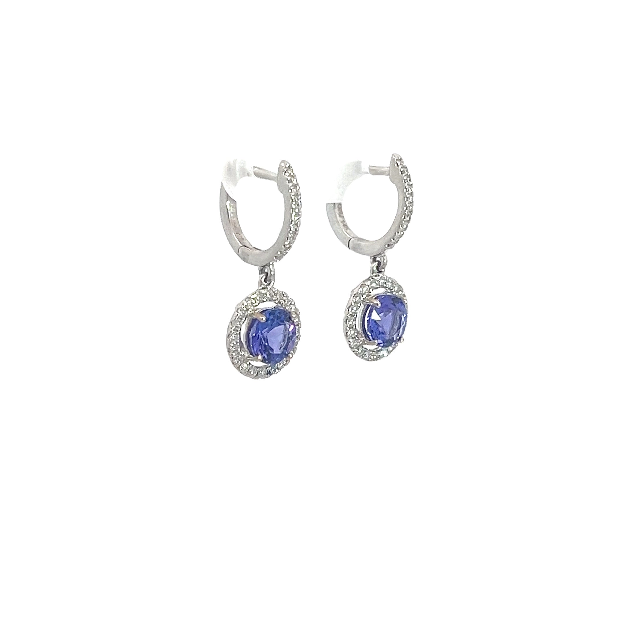 Elevate your elegance with these stunning Tanzanite Earrings. Crafted in radiant white gold, each earring showcases a brilliant tanzanite center stone encircled by a dazzling halo of diamonds. This exquisite combination not only highlights the rich color of the tanzanite but also adds timeless sparkle, making these earrings the perfect choice to enhance any outfit and captivate every gaze.
