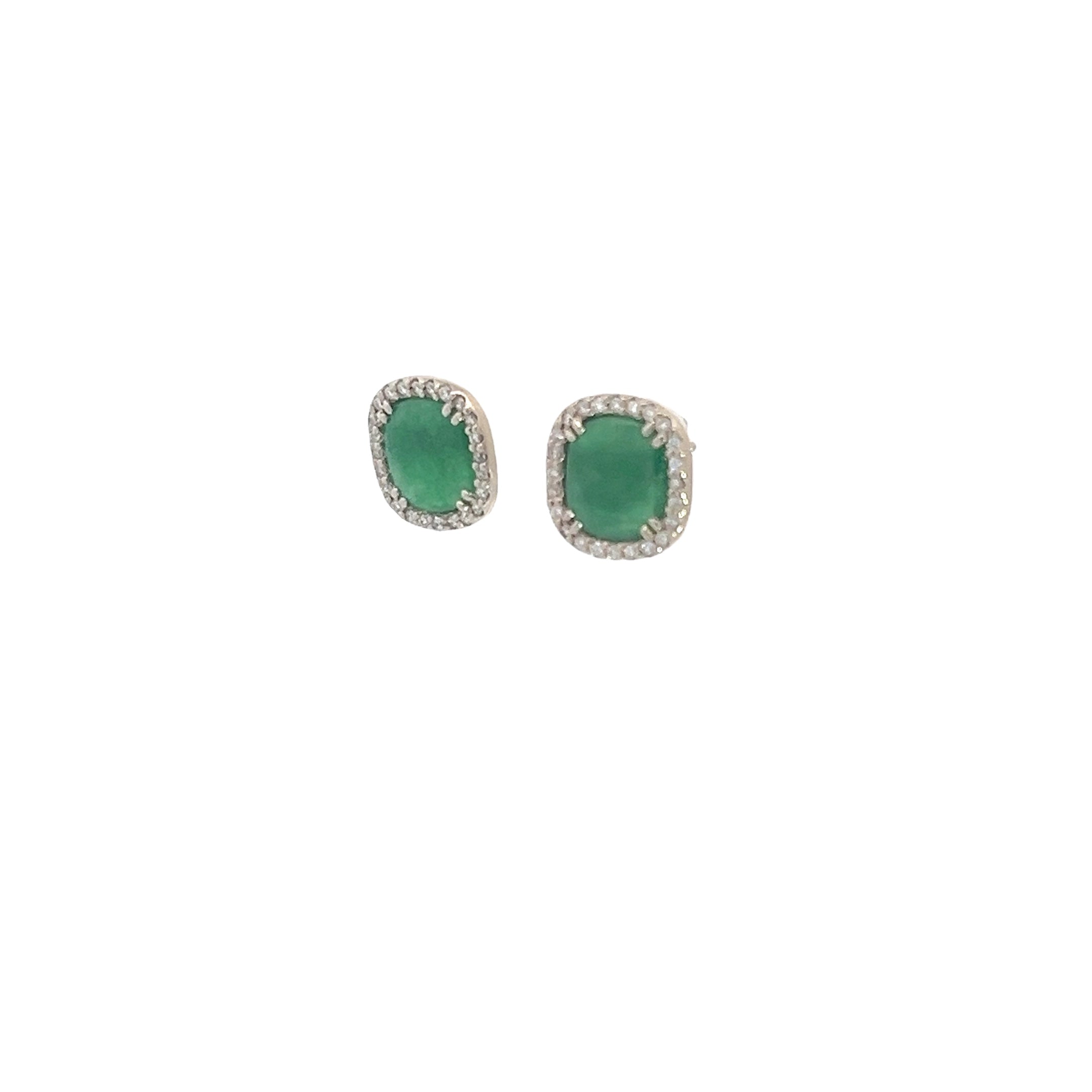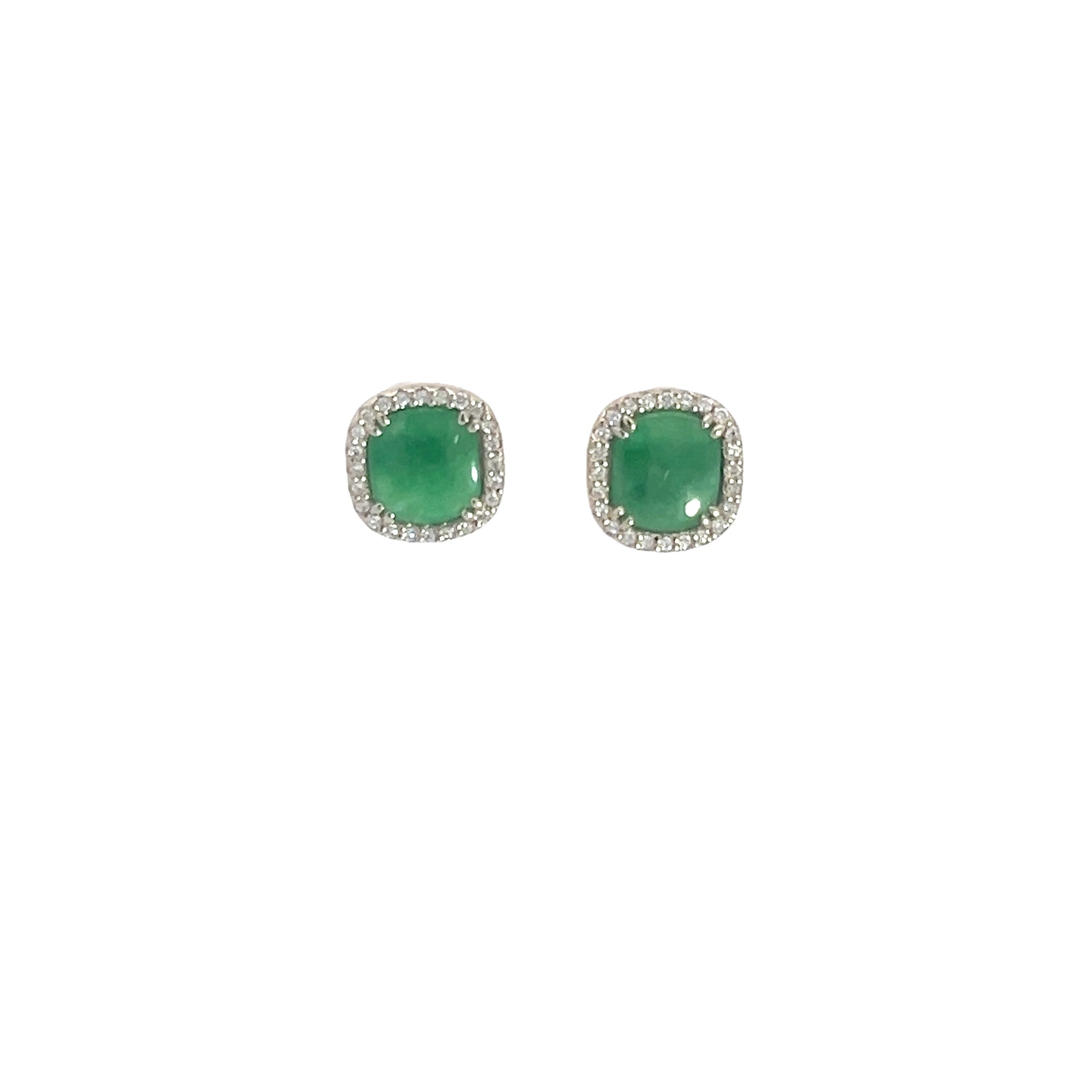 These elegant Jade stud earrings showcase stunning green gemstones surrounded by a delicate halo of sparkling diamonds. Perfect for adding a touch of sophistication to any outfit, these earrings are the epitome of timeless elegance.