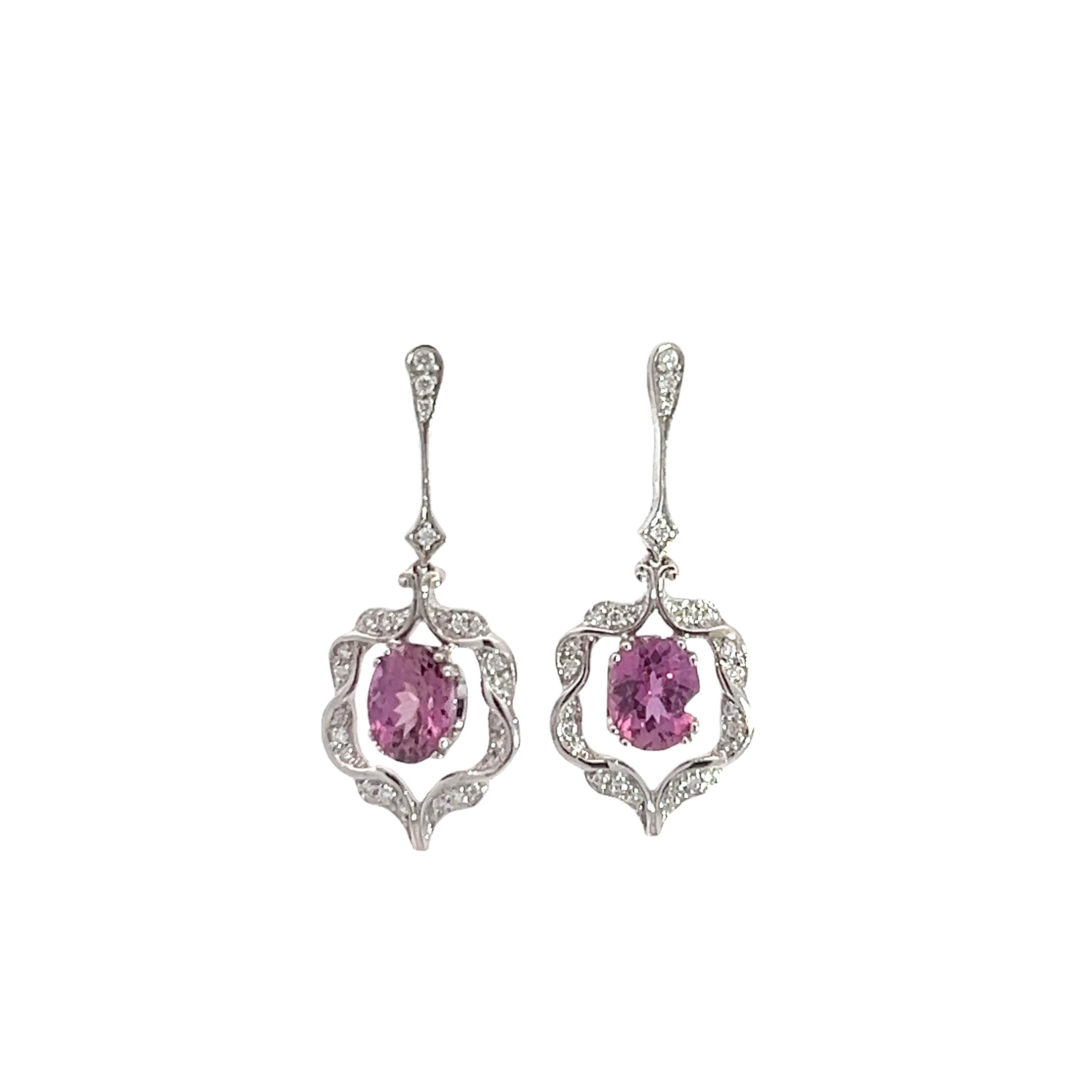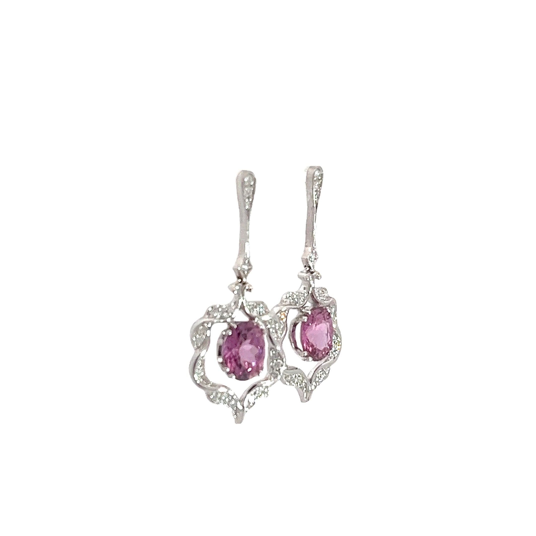 Make a bold statement with these Pink Sapphire Drop Earrings, featuring vibrant pink sapphires that catch the light with every movement. Accented by sparkling diamonds, these earrings combine daring color with timeless elegance, perfect for turning heads and expressing your unique style.