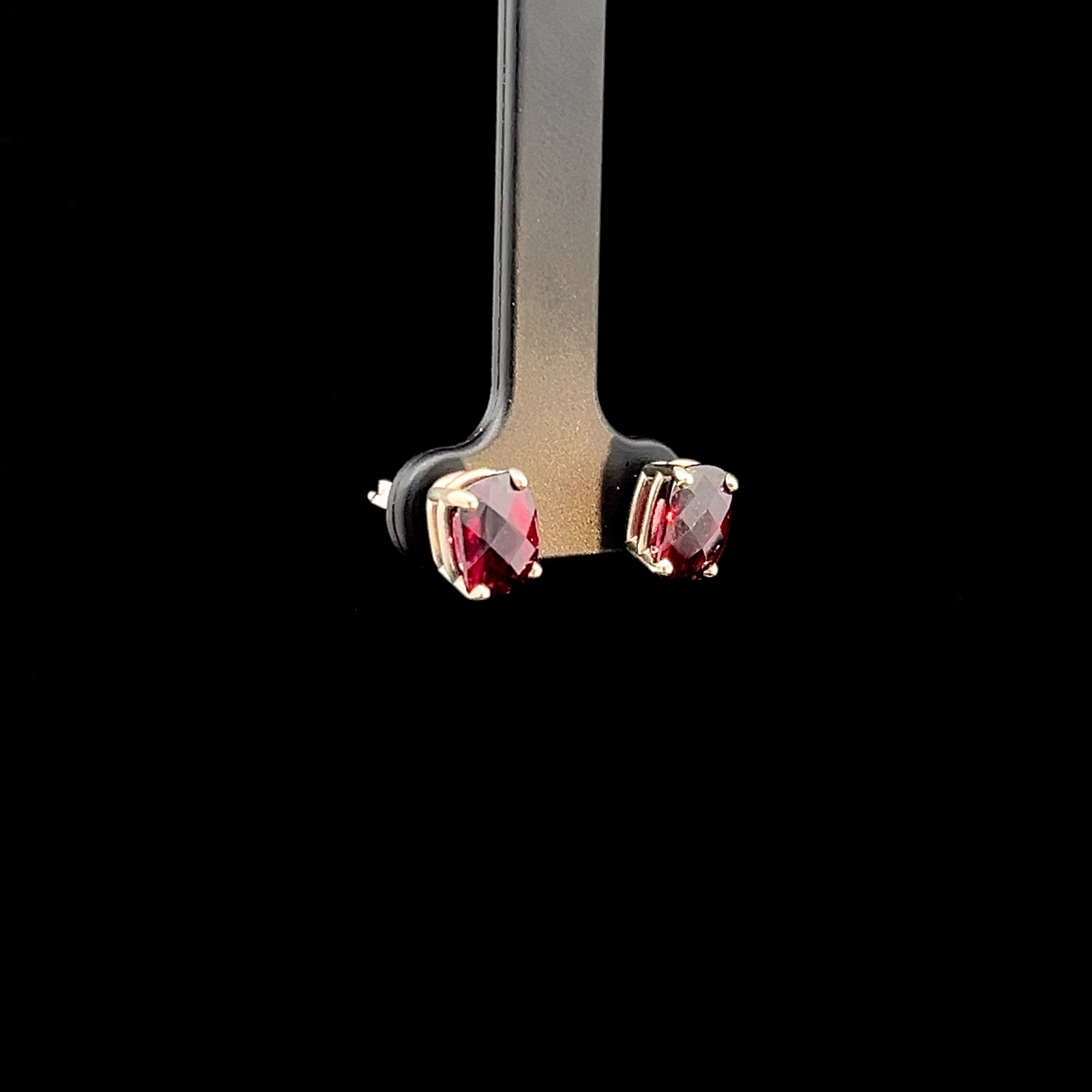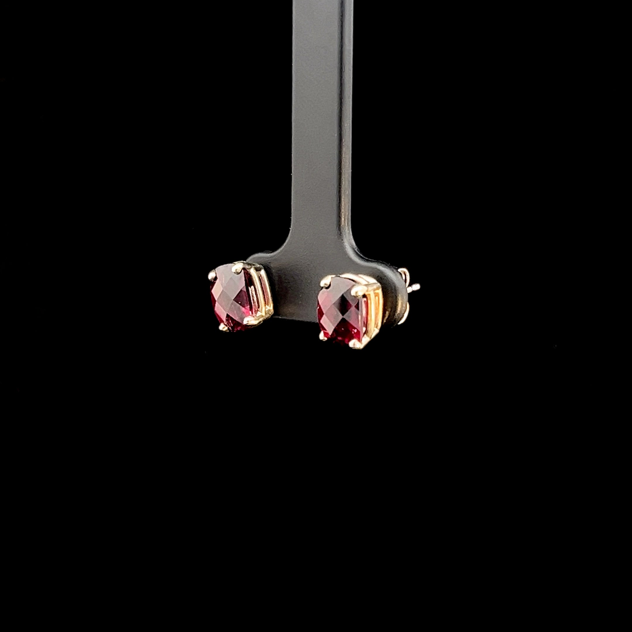 These stunning garnet earrings are a special piece. Rhodalite is a rare variety and color of garnet, showing more of a pink-purple tone to it. These specialty cut garnets showcase elegance, with the added level of rarity and beauty. Send us a message for more information on Rhodalite garnet! These studs are set in 14k yellow gold.